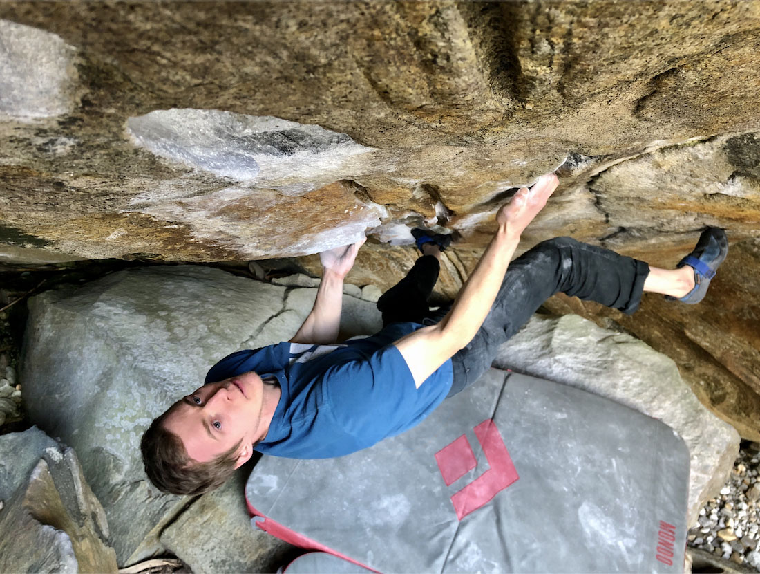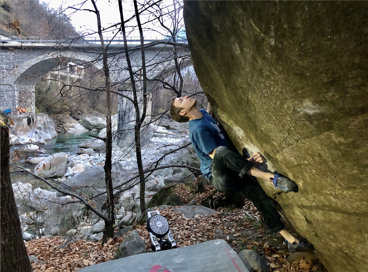 It took me a bit of time to get into my stride and adjust to the smooth rock after having spent a month on sharp crimps and the first day in Brione was a bit of a shock to the system. In Chironico you would very rarely see non-climbers at the crag or the parking but Brione is definitely more of a tourist spot. When we arrived it was very busy with climbers, walkers and tourists, not exactly what you want to see when covid restrictions have just been strengthened… Fortunately, this day seemed to be a one-off and the rest of the time there was a lot quieter, making social distancing very achievable with only the most popular boulders being busy on the weekends. Whilst adjusting to the style in Brione, I was still able to send some pretty cool climbs in the first week with the highlights being: ‘Black Pearl’ (7C+) a cool roof climb that has a funky toe hook start section which leads you into a crux heel hook move; ‘There is no Spoon’ (7A+) a water polished slab in the riverbed that has a cool toe hook catch that even Dan would have been proud to have set; and ‘Atlantis’ (7C) a fun little compression prow with a big move to a jug at the end.