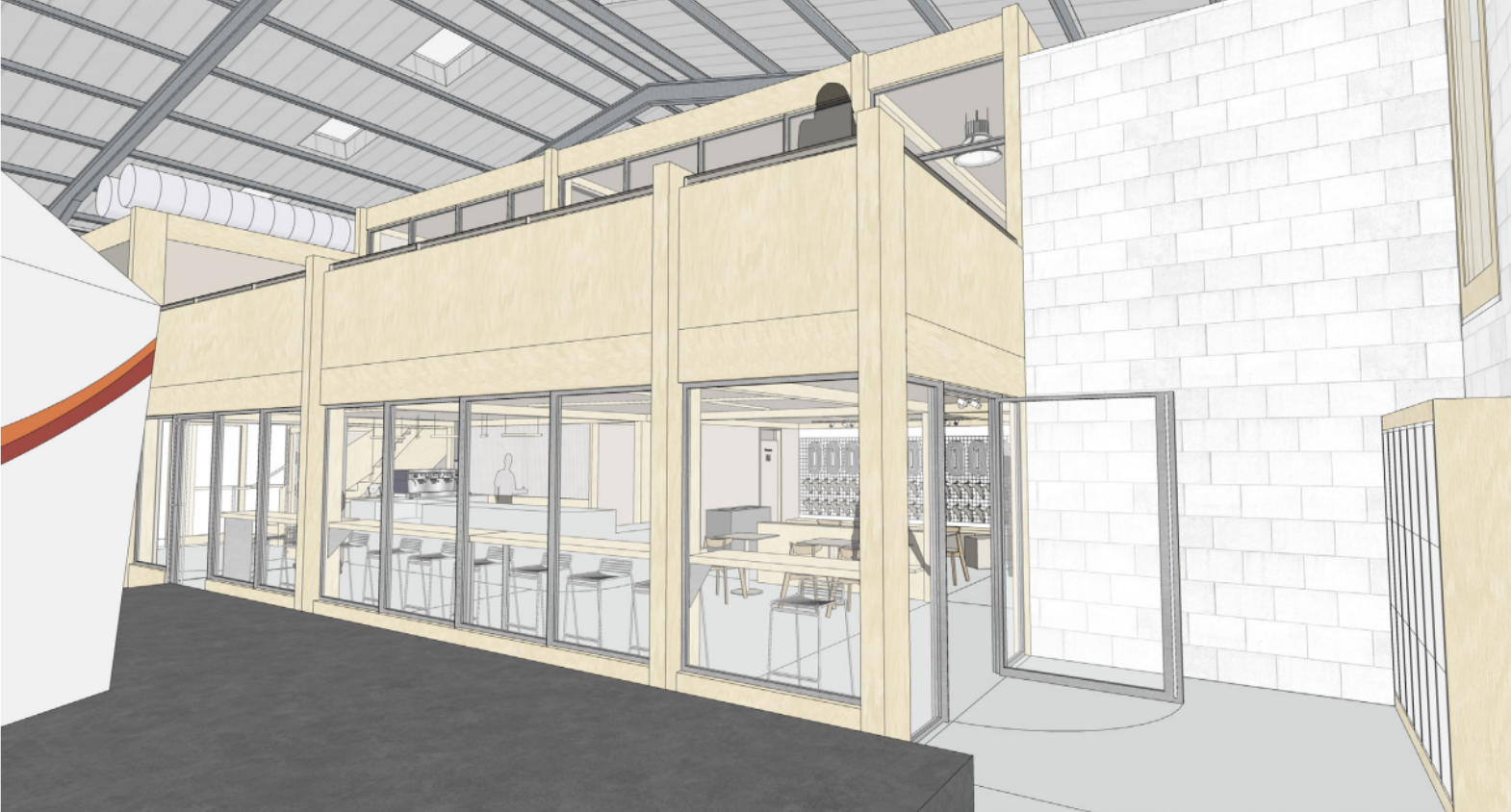The most exciting part of our renovations is the addition of a new building within a building upstairs to create a chalk-free, insulated reception, cafe, shop and viewing gallery. From 19 July – 11 September the comp wall and cafe boulder (nearest the gym end) will be closed. But the good news is that the rest of the upstairs climbing and changing facilities including showers will remain open – with only occasional interruptions – while our construction team builds the impressive new mezzanine structure.